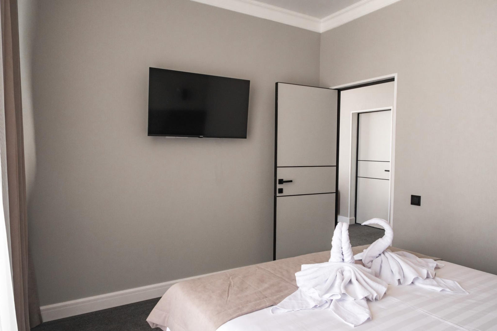 Номер категории Люкс двухкомнатный оборудован всем необходимым для комфортного проживания: двуспальная кровать, большой раскладной диван, прикроватные тумбы, комод, вместительный шкаф, тв в каждой комнате, ванная комната, косметические наборы для каждого гостя, комплект полотенец, wi-fi, а с балкона открываются виды на парк с озером, горы/море.