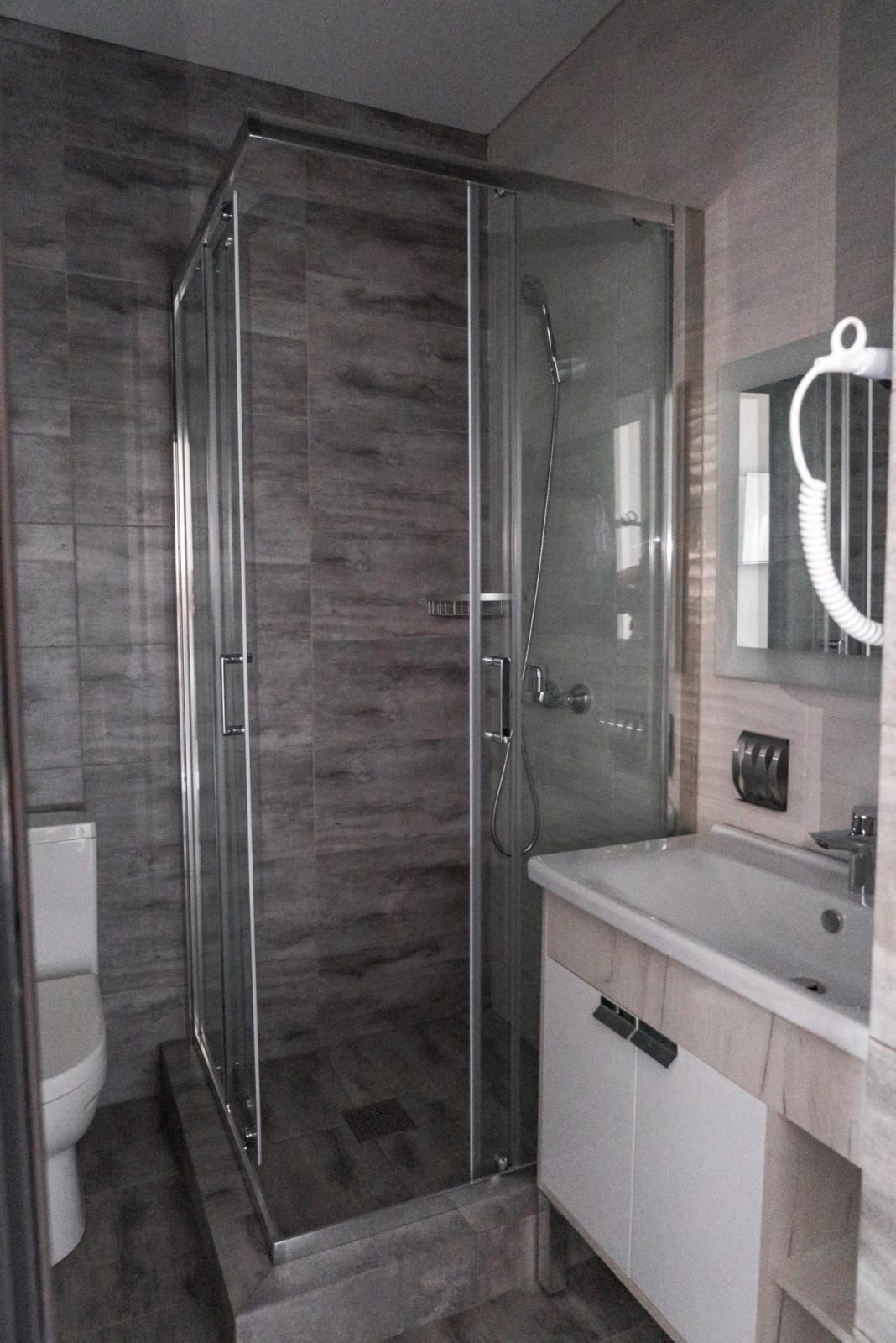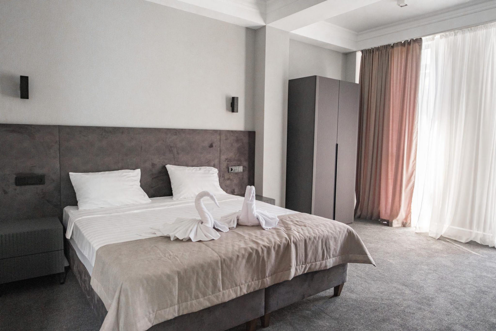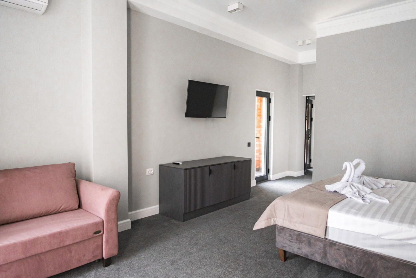 Номер категории Комфорт с балконом оборудован всем необходимым для комфортного проживания: двуспальная кровать/ две односпальные кровати, раскладной диван/кресло, прикроватные тумбы, комод, вместительный шкаф, тв, ванная комната, косметические наборы для каждого гостя, комплект полотенец, wi-fi, а с балкона открываются виды на парк с озером, горы/море.